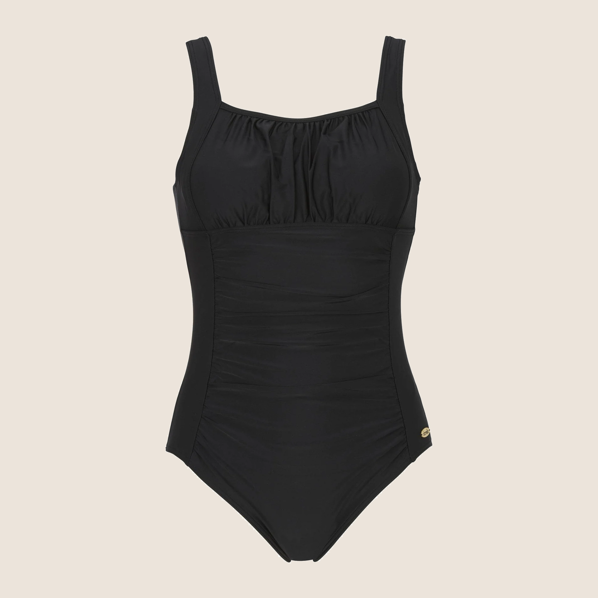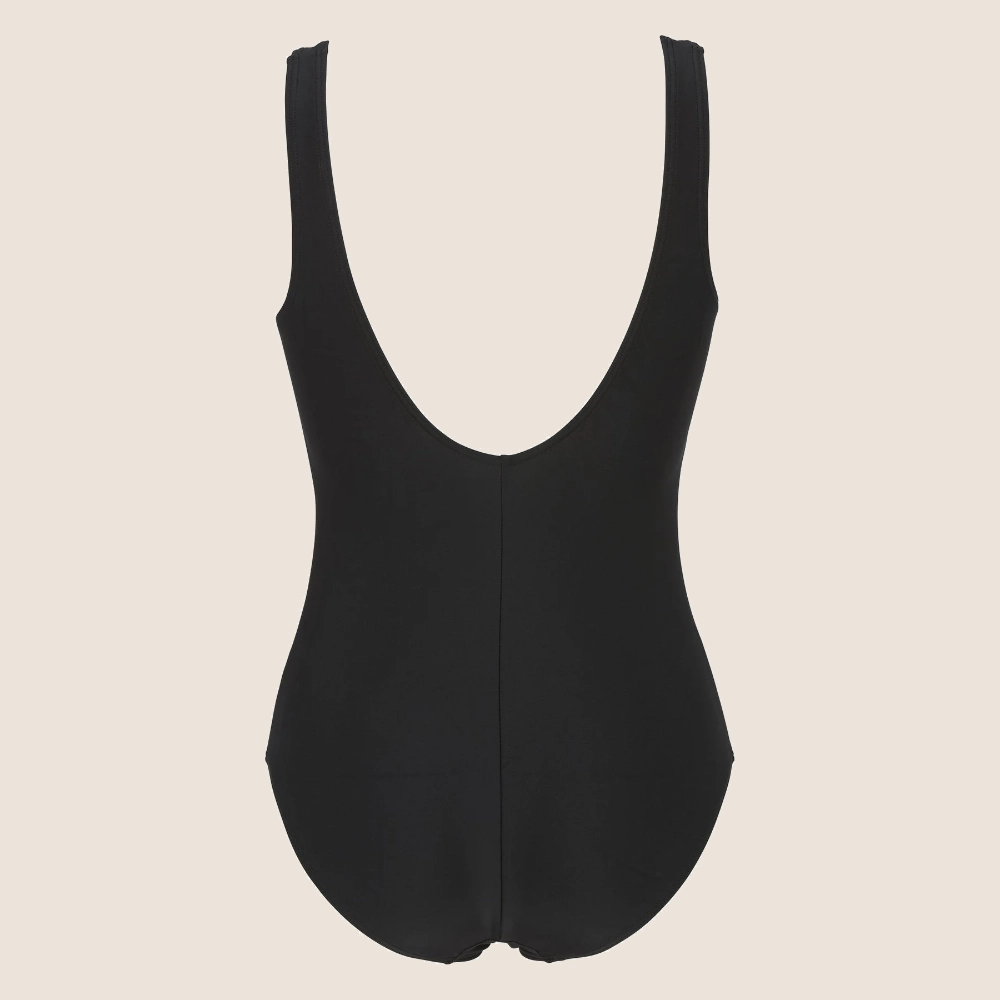 Shirley är baddräkten som förenar komfort och självsäker stil. Den har inbyggd bystsupport och mjuk vaddering som ger ett behagligt stöd och en naturlig form. De smickrande rynkorna över bysten och framtill framhäver silhuetten på ett elegant sätt, samtidigt som det följsamma materialet gör den skön att bära hela dagen – både vid stranden och i poolen.