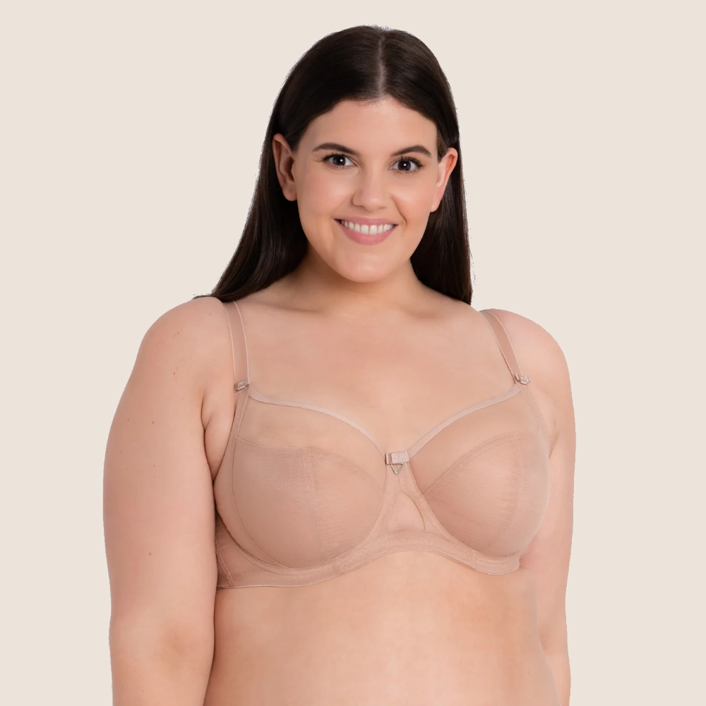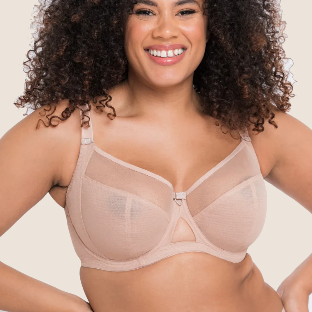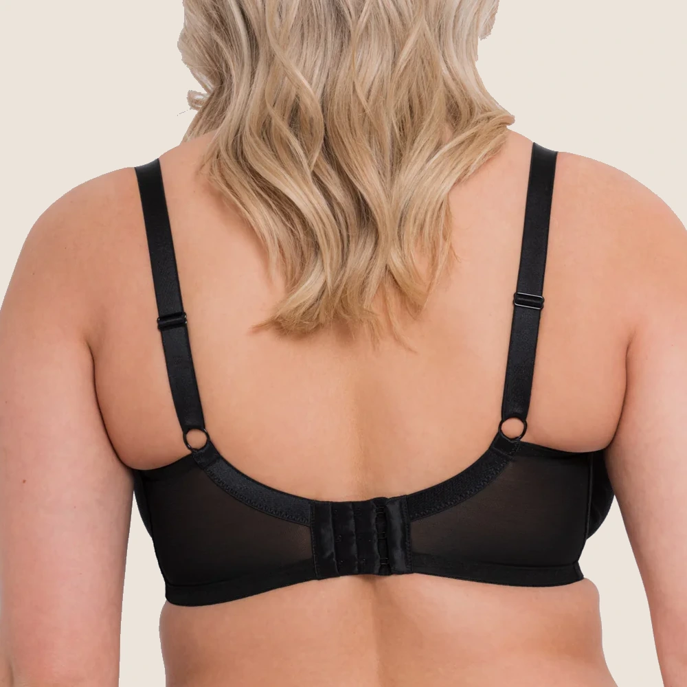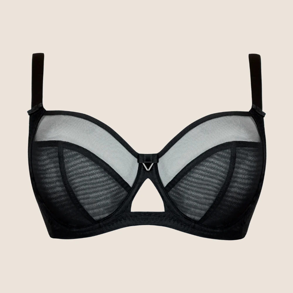 Den dubbla meshstrukturen i underkuporna ger stabilitet utan att kännas tung, och det eleganta nyckelhålsdetaljen framtill ger modellen ett modernt och stilrent uttryck. Axlarna får stöd av fullt justerbara band och den bygelkonstruktionen är både följsam och säker.