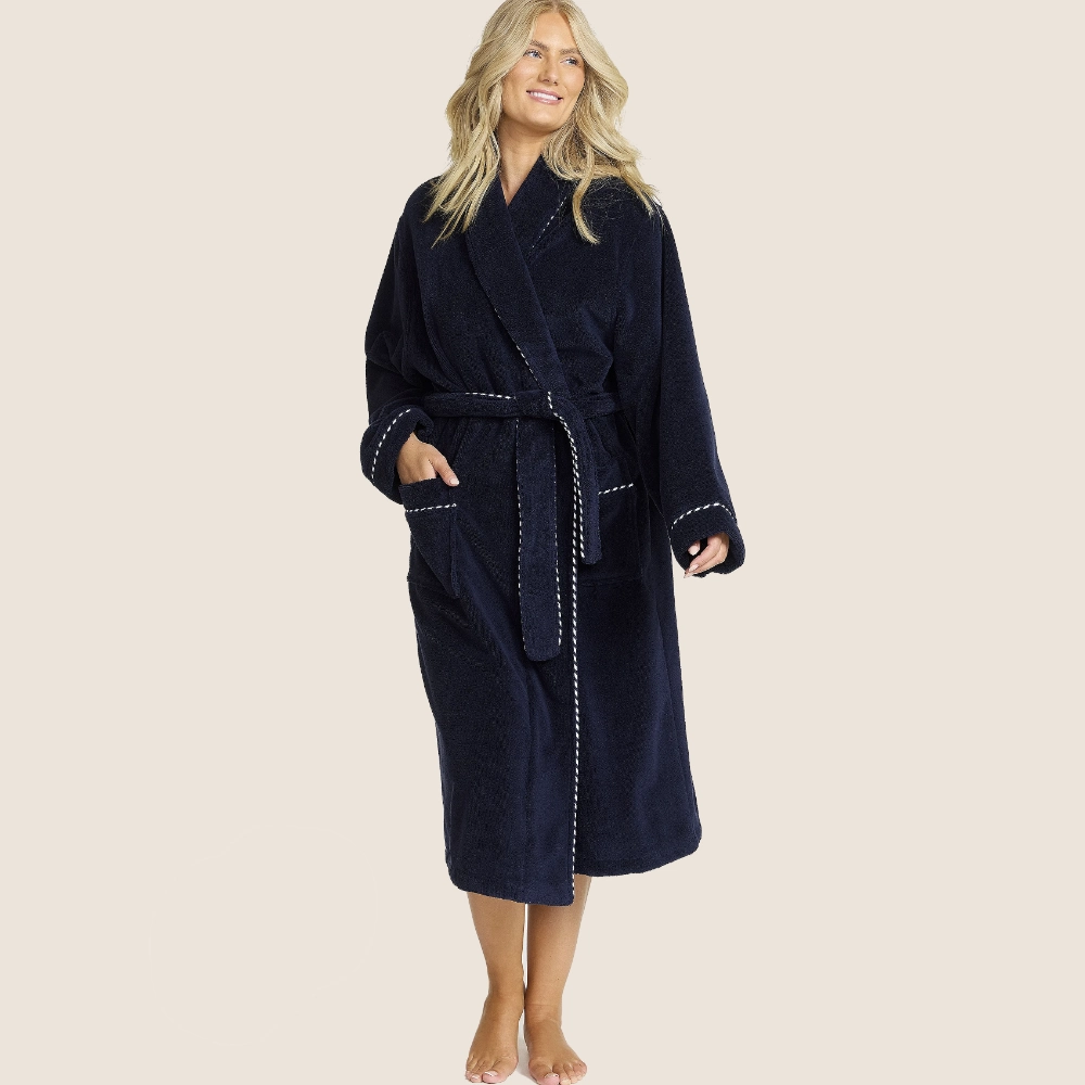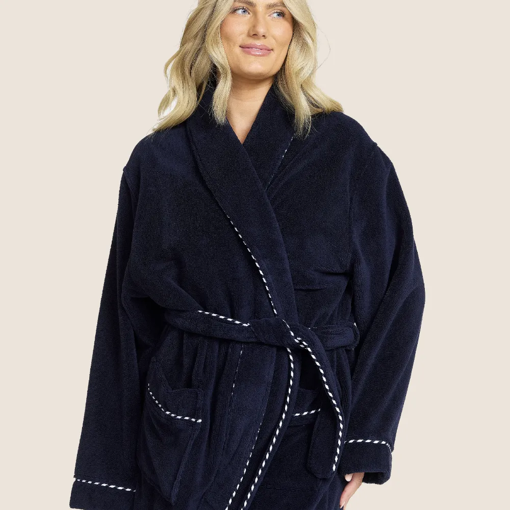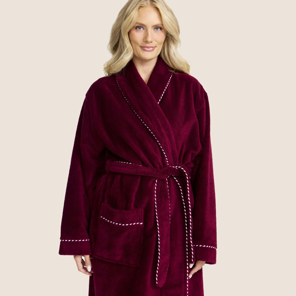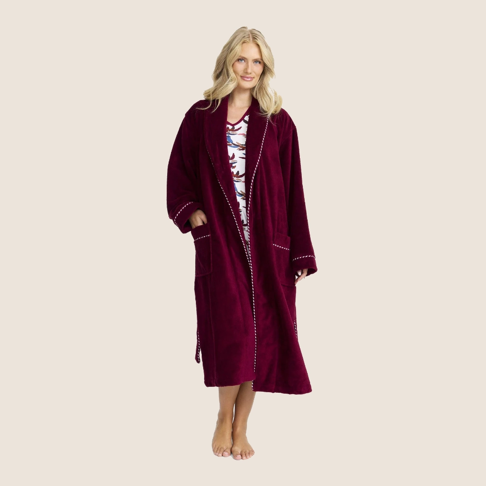 En mjuk och skön morgonrock med generös passform, knytskärp och fickor. Finns i berry och marinblå och ger en varm och lyxig känsla varje dag.