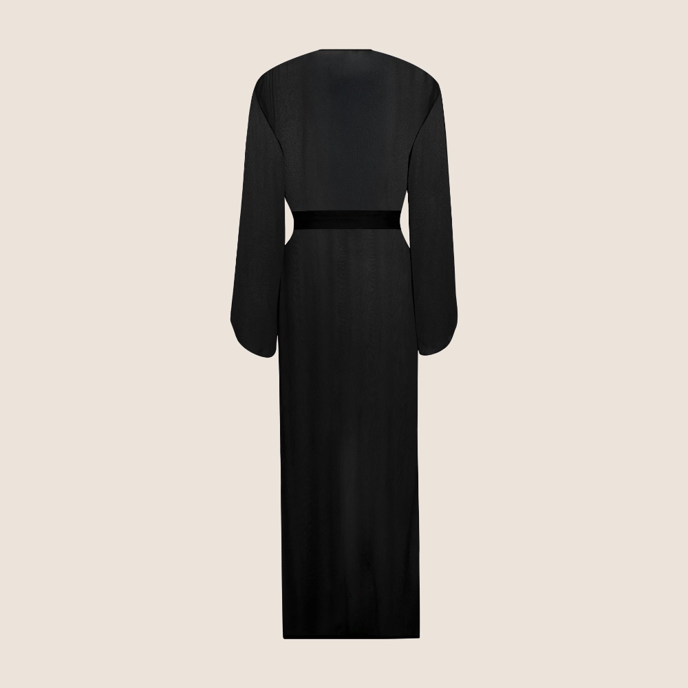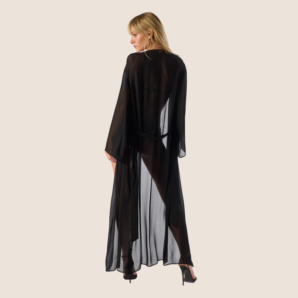 Elegant lång kimono i lätt och genomskinligt material.