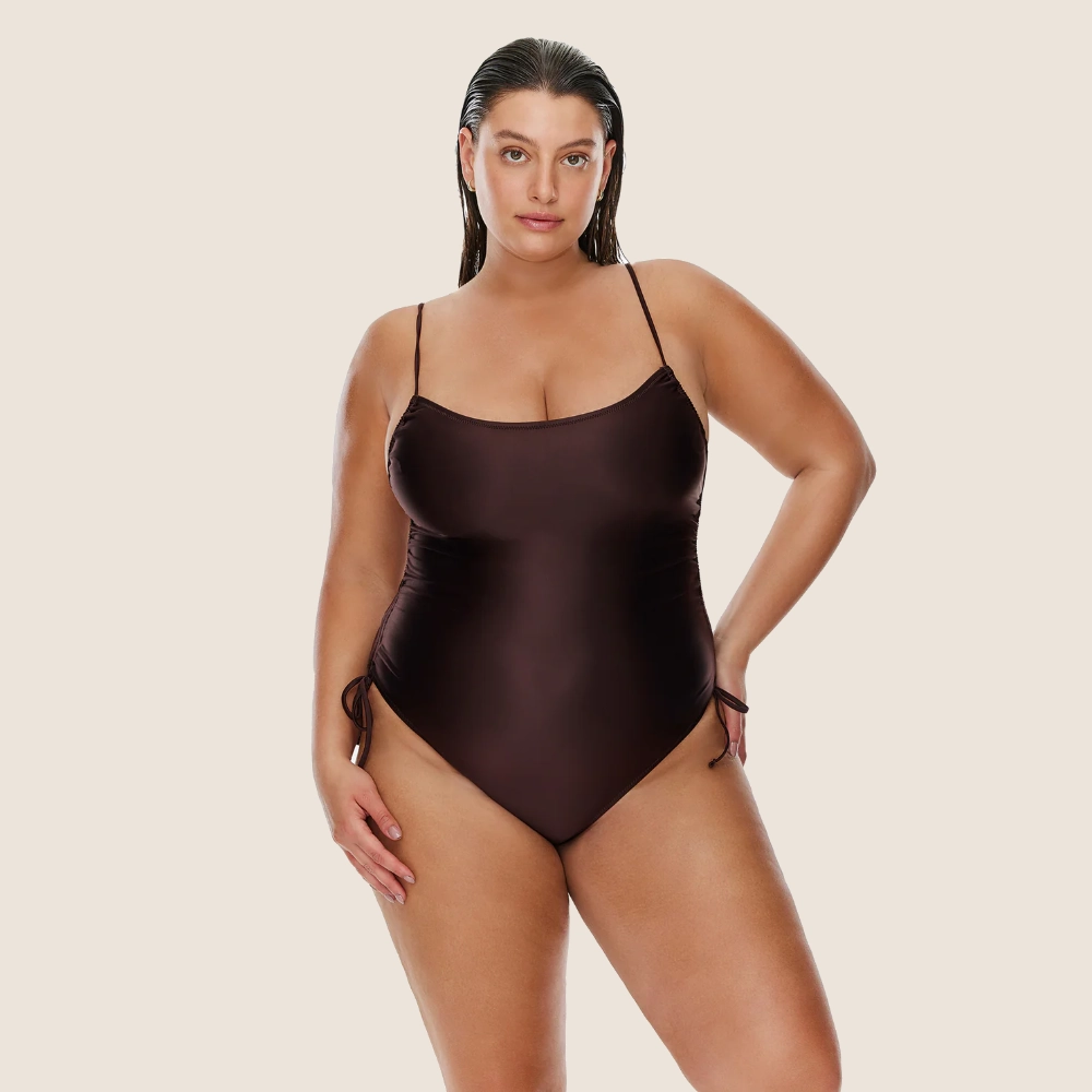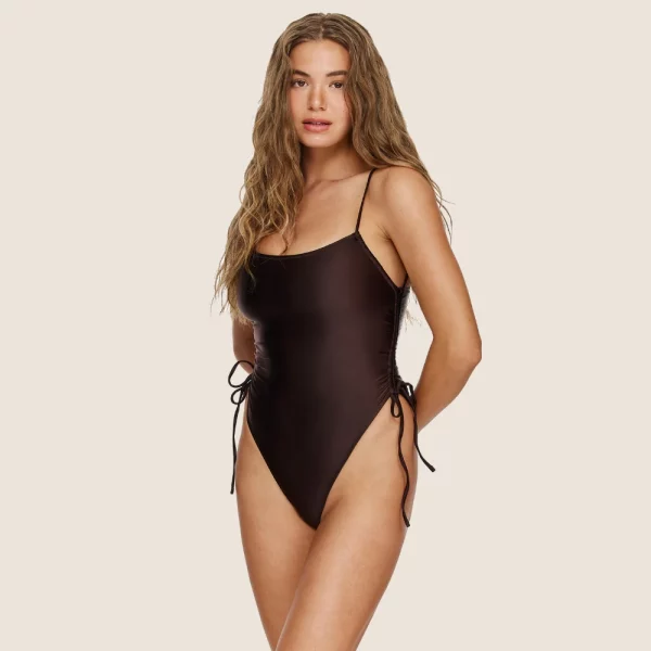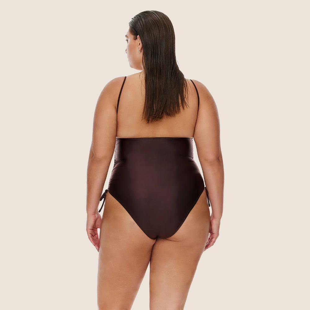 Den djupa chokladbruna färgen är både elegant och tidlös och passar lika bra vid poolen som på stranden. Den stilrena designen gör dessutom att baddräkten kan bäras som en body tillsammans med jeans, kjol eller linnebyxor.