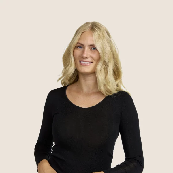 Långärmad tröja Wilma från Damella är ett exklusivt basplagg som kombinerar värme, mjukhet och elegans. Den är tillverkad i en lyxig blandning av merinoull och silke som känns behaglig mot huden och reglerar kroppstemperaturen året runt.