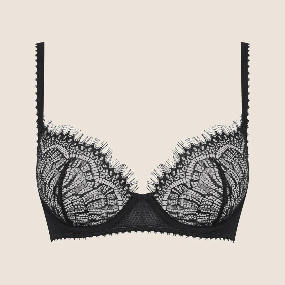 Behå i balconette-modell från Maison Close i den ikoniska kollektionen Accroche Cœur. En sofistikerad modell i grafisk spets kombinerad med transparent tyll som skapar ett djärvt men elegant uttryck.