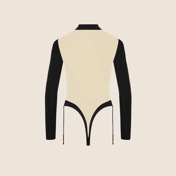 Bodyn öppnas smidigt både i nacken och i grenen med diskreta hyskor, vilket gör den enkel att ta på och bekväm att bära. En bomullsfodrad gren ger extra komfort, även vid längre användning.