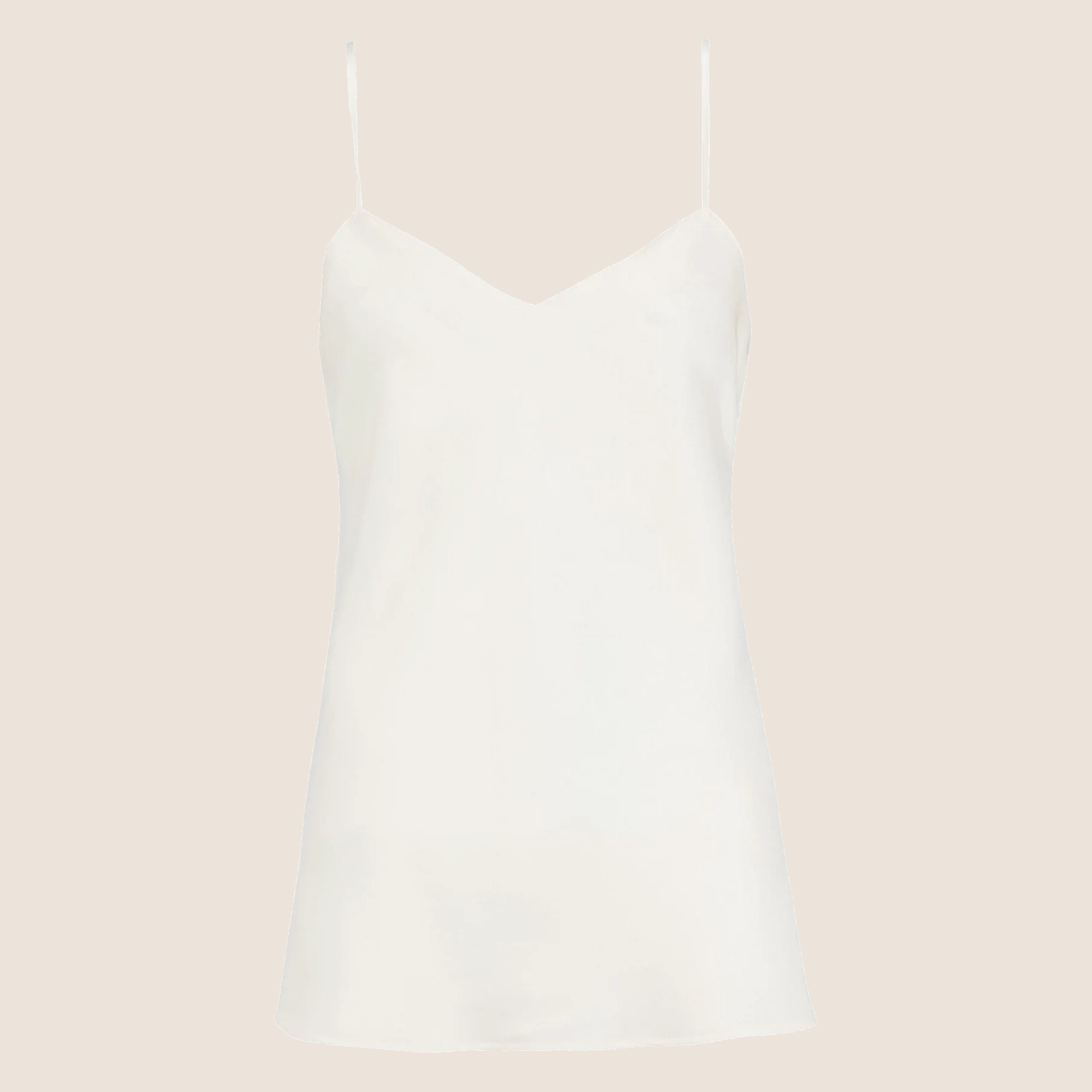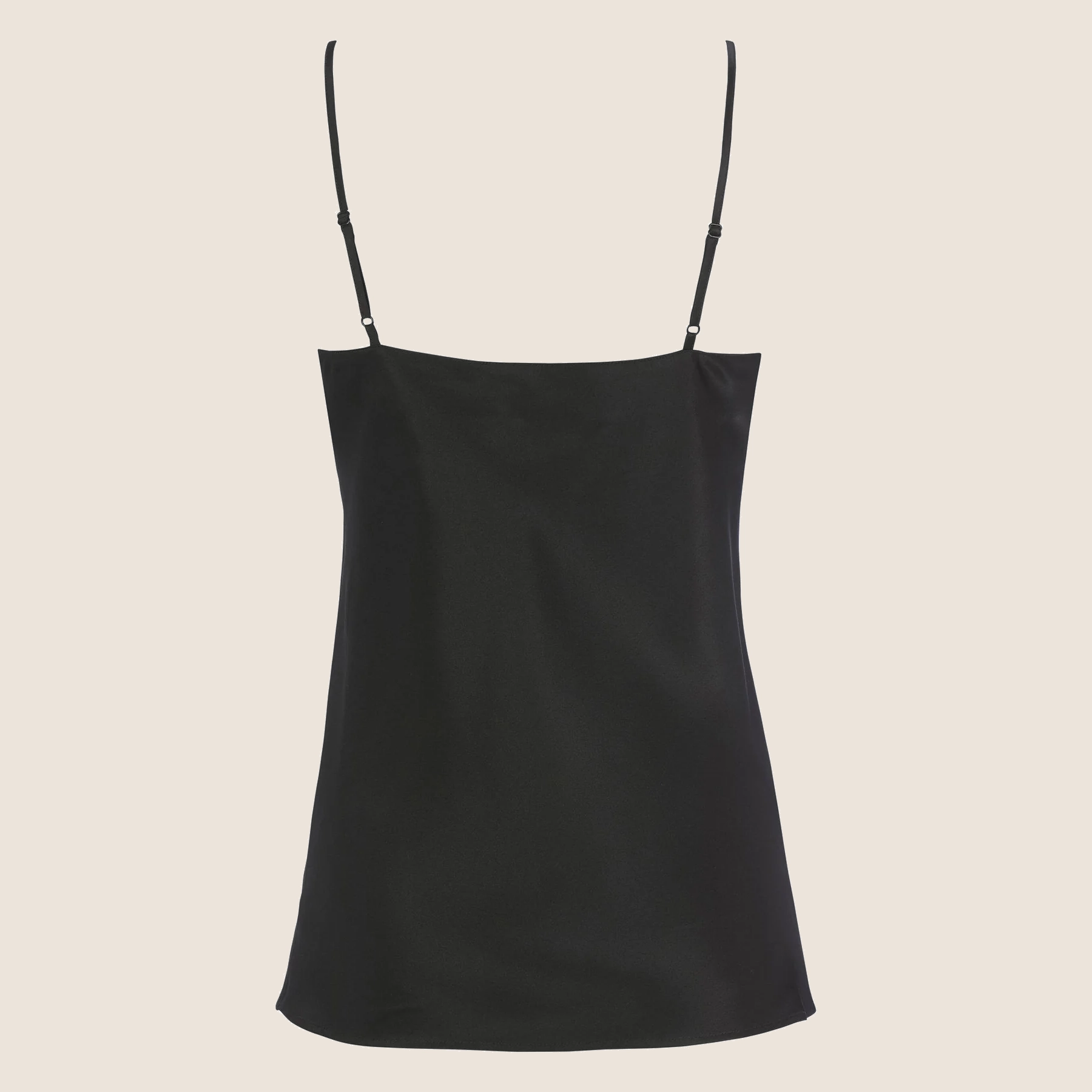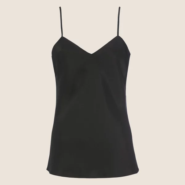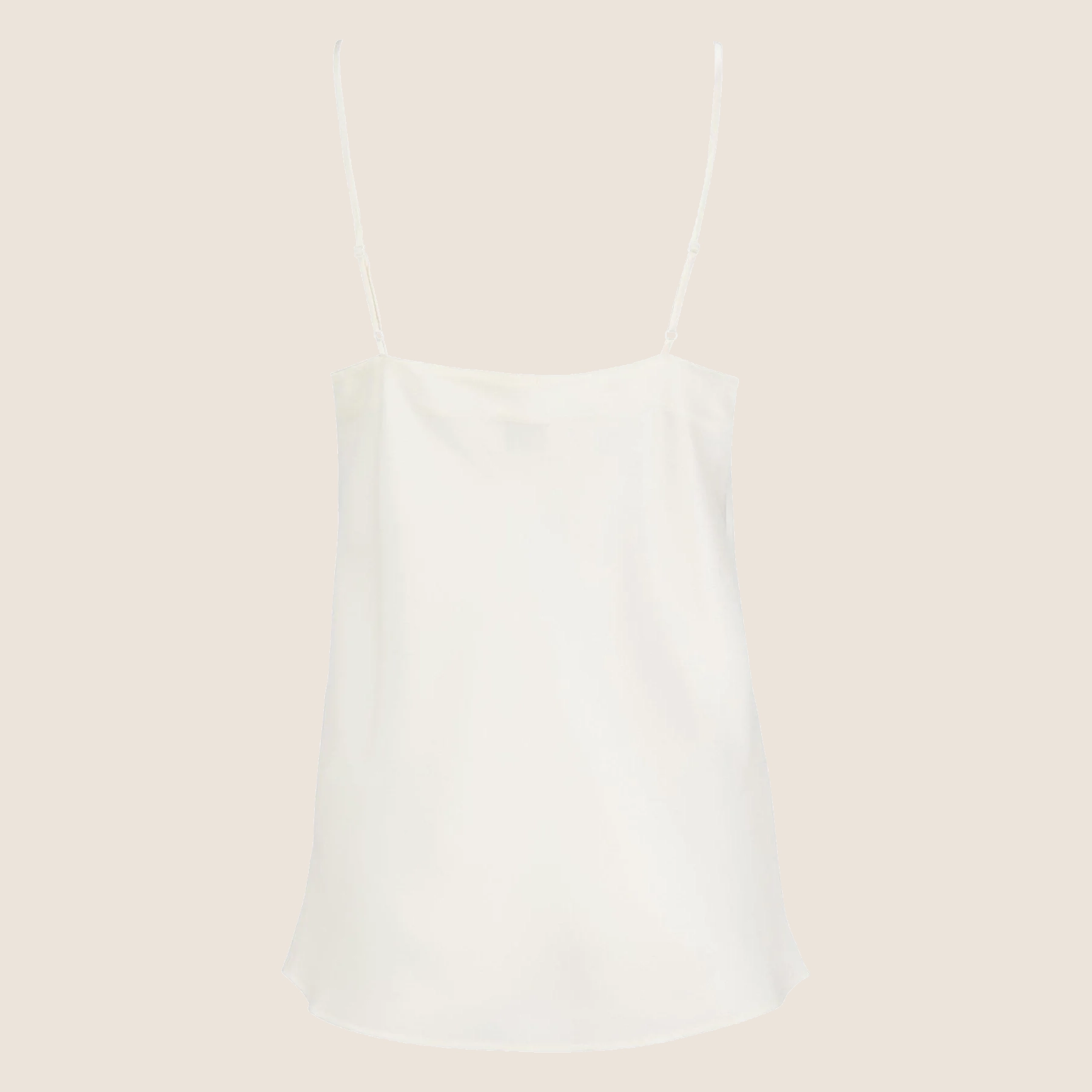 Upplev tidlös elegans med detta exklusiva sidenlinne från Damella. Det vävda sidenet med vacker satinfinish ger en mjuk lyster och en sval, skön känsla mot huden. De reglerbara axelbanden gör att linnet alltid sitter perfekt och ger dig full komfort, oavsett om du bär det som ett pyjamastopp eller som en stilfull detalj under kavajen.