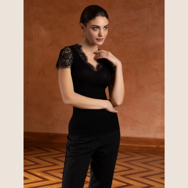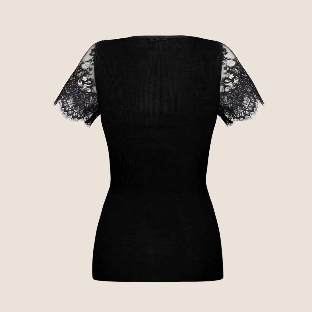 Lise Charmels Loungewear tröja med korta ärmar är den perfekta följeslagaren när du vill koppla av med elegans. Denna kortärmade tröja är tillverkad i en smidig och bekväm tubstickning med spetsinläggningar som smyckar urringningen och ärmarna.