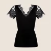 Denna Loungewear T-shirt är ett uttryck för sofistikation och stil. Den är tillverkad för att du ska känna dig avslappnad utan att kompromissa med din personliga elegans. Spetsinläggningen på främre urringningen ger en subtil touch av glamour till denna bekväma loungewear.